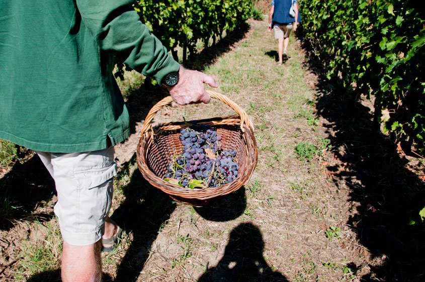 We were then given wicker baskets and pairs of pruning shears, to venture off to a specific parcel, where Francois grows table grapes, very old and local varieties, red and white grapes, sweet and delicious to taste (I’m pretty sure I ate more than what I picked directly off the vine!). Tasting from organic parcels is a definite OK but I would not try the same with treated vines. You can easily get carried away with the picking – everything looks so good.